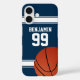 Would you like this design in a different colour combination? Please contact us through our GiftsBonanza store and we will be happy to assist with your custom request. Perfect for the basketball fan or basketball player whose team colours are dark blue and white, with a sports basketball jersey style design in dark blue with white stripes and customizable text for their name and number. A basketball is also featured as part of the design.
