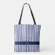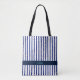 Blue and White Stripes Modern Monogram Tote Bag