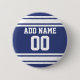 Blue and White Stripes with Name and Number 2 Inch Round Button