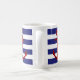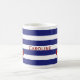 Bold nautical stripes in blue and white with a classic red anchor on each side. Personalize with the name or special text of your choice.
