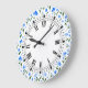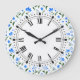 Blue and White Summer Flowers Retro Kitchen Large Clock
