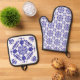 Blue and White Talavera Three Oven Mitt & Pot Holder Set