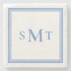 Create your own blue and white three letter monogram stone coasters. Simple to personalize with custom initials in elegant minimalist typography.