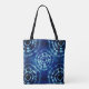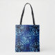 Blue and white tie dye circle pattern tote bag
