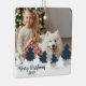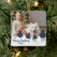 Blue and White Two Photo Christmas Trees Ceramic Ornament