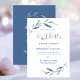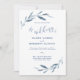 Blue and White Watercolor Leaves Wedding Invitation