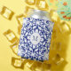 These summer-perfect can coolers are ideal for your beach house or backyard patio parties. Breezy Mediterranean inspired design features a fresh watercolor spin on the classic Spanish tile fretwork pattern in royal blue and white.