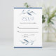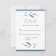 Blue and White Watercolor Wedding RSVP Card designed with soft blue watercolor leaves on a white background. The the text includes: Kindly Reply By: Month xx, 20xx; along with space for guests to complete their names. The reverse is a matching blue background. To personalize, simply insert your text into our template, replacing the sample. Be sure to view the complete Blue and White Watercolor Wedding Collection for matching cards and accessories.