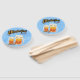 Oktoberfest blue and white diamond pattern fan, with graphics of two beer steins, a pretzel and fancy graphic text reading Oktoberfest. Great way to stay cool during the festival and great for vendors to sell too!