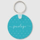 Vibrant Blue and White with Dots and Name Typography Keychain.