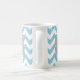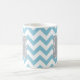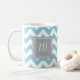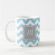 A blue and white chevron zig zag pattern has a light grey monogram frame with customizable initial.
