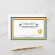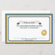 Decorative blue, yellow and white academic award certificate, with custom text. Personalize to suit your class room or school awards ceremony needs.