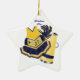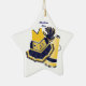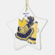 Great cheerleading Christmas ornament for the cheerleader you know. The front features a blue and yellow cheer dress, pom-pom, and megaphone. You can customize the text at the top. The back has a space for a custom photograph of your choice.