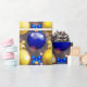 Wrap your holiday gifts with this Christmas wrapping paper featuring blue and yellow Christmas balls with bows. Your presents will look extra jolly under the Christmas tree.