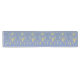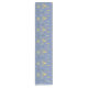 Decorative blue and yellow dream catchers and feather design on light blue table runner.