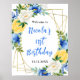 This beautiful and elegant birthday welcome sign features watercolor blue, yellow and white flowers with foliage. The text combines handwritten script and serif fonts for a stylish and modern look. This is perfect for a spring or summer rustic birthday.