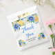 This beautiful and elegant wedding favor bag features watercolor blue, yellow and white flowers with foliage. The text combines handwritten script and serif fonts for a stylish and modern look. This is perfect for a spring or summer rustic wedding.
