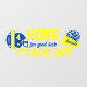 Show your support for your favourite football player and cheerleader with our Blue and Yellow Game Day Car Window Cling! This vibrant and durable cling proudly displays your player and cheerleaders number/names, making it the perfect accessory to showcase your team spirit. Easily attachable to any car window, it features a bold message to "Honk for Good Luck!" encouraging fellow fans to join in the excitement. Let everyone know who you're cheering for with this must-have game day accessory!