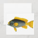 Vintage illustration marine aquatic ocean life design featuring a blue and yellow grouper fish. The dorsal and pectoral fins are yellow as well as the tail. Sometimes called sea basses.