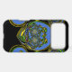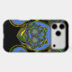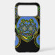 Striking Contrast: The vibrant blue and yellow motifs pop against the deep black background, creating a stunning visual impact.