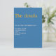 Add elegance and charm to your wedding stationery suite with this blue and yellow lithograph-style “The Details” enclosure card. Featuring a bold blue background with vibrant yellow text, this card provides ample space to include essential information such as reception details, accommodations, venue, RSVP contacts, and website links. The reverse side boasts a stunning floral pattern in soft pink, blue, and yellow hues, perfectly complementing the overall design. Ideal for couples seeking a sophisticated yet artistic touch to their wedding, this details card pairs seamlessly with the matching lithograph-style invitation suite for a cohesive and stylish look.