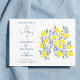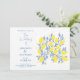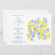 This joyful wedding invitation radiates happiness with its bright yellow and blue theme. The top of the card features a delightful lemon branch illustration, bursting with vibrant yellow lemons and delicate blue leaves. The handwritten-style script “The Wedding of” adds a touch of elegance and personality, while the couple’s names and wedding details are clearly displayed in a clean serif font. The combination of playful design and classic typography makes this invitation perfect for sunny, cheerful weddings, whether held in the spring or summer. It’s a fresh, modern way to invite guests to celebrate your special day.