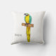 Blue-and-yellow macaw bird cartoon illustration throw pillow
