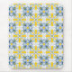 Blue and yellow "azulejos" is a Portuguese-inspired tile pattern that fits not only home décor objects but also wearables like clothing and accessories. The essence of this design, known as "azulejo," traces its origins back to the Arabic phrase "small polished stone." Ceramic tiles belong to Portugal's rich history and cultural tapestry. They are a part of the nation's architectural heritage, adorning both the interiors and exteriors of old structures.