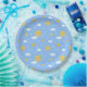 Let your party guests dine in style with these simple and cute sunshine paper plates that feature a blue cloudy sky and smiling suns pattern.