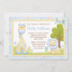 Cute Blue Giraffe and Lion Animal Baby Shower Invitation for a baby boy. Adorable scrapbook style quilted invitation is the perfect way to invite friends and family to a baby shower. Some elements by www.nitwitcollections.com License #41088. Customize with your baby shower details.