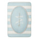 Blue & Antique White Stripes Oval Framed Monogram Bath Mat
