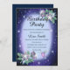Blue Any Age Bling Floral Bird Birthday Invitation