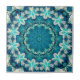 Blue Aqua Mandala Rosette Retro Hippie Tile