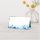 Blue aqua watercolor grass foliage effect wedding tented style seating place cards. Pretty modern loose watercolor wash art and splashed paint blue grass effect wreath art sit down wedding table name place cards. Beautiful design ideal for a beach, dune, art or blue themed wedding. Customize with your table number own greeting and two lines of space to handwrite your guests name. © Original watercolor art and design by Sarah Trett www.sarahtrett.com for www.mylittleedenweddings.com