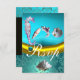 BLUE AQUAMARINE DAMASK BEACH WEDDING MONOGRAM RSVP CARD