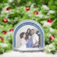 Blue Arch Christmas Family Photo with Snowflakes Snowglobe