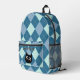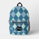 Blue Argyle, Black Cat Personalized Printed Backpack