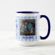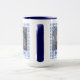 Shades of soft blue in an argyle or diamond pattern create a fun two photo mug for mom with fully customizable text.