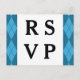 Classic and elegant Argyle Wedding RSVP Postcard with a simple blue diamond argyle pattern background. Easy to customize with your wedding details. For more customization options, click on the Customize It button.