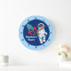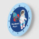 Cool rocket ship and astronaut outer space clock for a little boy's room. Customize this blue wall clock with your child's name or other text. Awesome images by www.prettygrafik.com