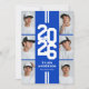 Modern blue athletic graduation party invitations featuring an eye-catching class year layout in a varsity font, a photo collage of the grad, two white stripes, their name, school, and an easily personalized party invite template, these sporty invites will make your celebration a memorable one.