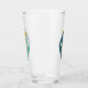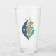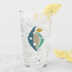 This fabulous mid century modern drinking glass features boomerangs, circles, and diamond shapes in a combination of the colours turquoise, blue, tan, gold, and black.