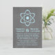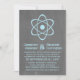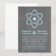 Cute and nerdy Atomic Chalkboard Wedding Invitation featuring a simple atomic symbol in light blue on a chalkboard look background. This geeky and fun wedding invitation is perfect for the science enthusiast couple! Easy to customize, simply add the details of your wedding in the spaces provided. Click "Customize It" to find more personalization options.