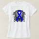 Blue ribbon with wings and filigree pattern. The blue ribbon stands for addiction-recovery awareness, arthritis awareness, Blue Ribbon Coalition: responsible use of public lands for the benefit of all recreationists, bullying awareness, Canada's National Non-Smoking Week, child abuse awareness, chronic fatigue syndrome awareness, colon cancer awareness, Crohn's disease awareness, dysautonomia awareness, Electronic Frontier Foundation: freedom of speech online, hidradenitis suppurativa, Huntington's Disease Awareness, hydranencephaly awareness, myalgic encephalomyelitis awareness, Pro-Choice, Stevens–Johnson syndrome awareness, tuberous sclerosis awareness, Von Hippel–Lindau disease awareness, and more. January is Graves Disease Awareness Month, Thyroid Disease Awareness Month. March is Lymphedema Awareness Month, Spay or Neuter Pets Awareness Month. April is Cushing Syndrome Awareness Month. May is Arthritis Awareness Month, Addison's Disease Awareness Month, Behcets Disease Month. June is Scleroderma Awareness Month. August is Velo-Cardio Facial Syndrome Awareness Month. September is Prostate Cancer Awareness Month, Chronic Illness Awareness Month.