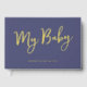 Blue Baby Book Foiled Script Keepsake for Mother features a minimalist and elegant design, perfect for preserving a mother’s love and memories. The gold foil text on a dark blue background adds a timeless touch, with “My Baby” in script and the child’s name with Est. 20XX in a modern sans-serif font. The spine reads “A book of moments & memories”, while the back cover carries the heartfelt message “With all my love, Mom.”