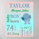 Baby birth stats sign with all the important birth information to display on a wall or dresser. All information can be changed for a boy or girl.