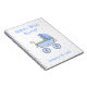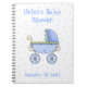 Sweet baby shower notebook done in white, with blue polka dots, with adorable graphics of a blue baby buggy. Baby blue text is fully customizable to suit your shower needs. Great for guests to write special notes to the mom to be and for listing the gifts received. Personalize for your baby shower.