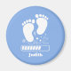 This personalized blue magnet has been designed with expectant moms and care providers in mind. Whether you're a mom-to-be, pediatrician, obstetrician, family practitioner, midwife or family practitioner, this personalized magnet is a fun addition to your home or office. Featuring a pair of adorable baby feet and a loading signal below, this magnet is a fun gift for an expectant mom and those who care for pregnant moms and dads and work around newborns.