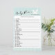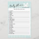 White bunny rabbit appears just above honoree's name and right beside "Baby Shower" script. Light blue, diamond shaped, background.