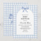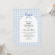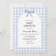 Invite your loved ones to shower the parents-to-be with love and joy with this Blue Baby Shower Invitation. Featuring a charming arch design adorned with a delicate blue ribbon and classic blue-and-white plaid accents, this minimalist yet elegant invite is perfect for celebrating a baby boy in style. With its timeless blue tones and soft details, this invitation sets the perfect tone for a heartwarming and memorable gathering. Whether you're hosting a cozy get-together or a grand celebration, this design is ideal for welcoming a little bundle of joy! BBS906